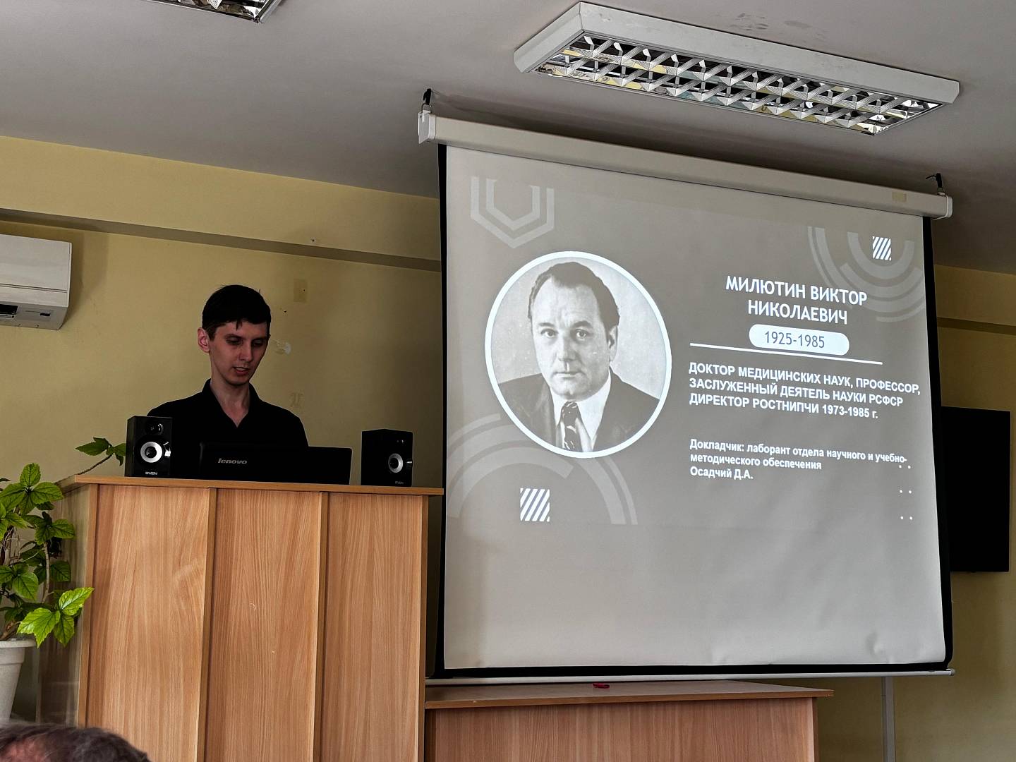 1. Лаборант отдела научного и учебно-методического обеспечения Осадчий Денис Александрович «К 100-летию со дня рождения Милютина Виктора Николаевича (1925-1985)».
