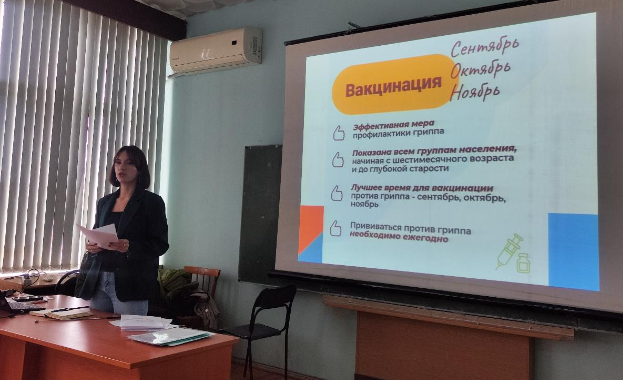 29 сентября 2025 года м.н.с. отдела микробиологии холеры и других острых кишечных инфекций, член Совета молодых учёных ФКУЗ «Ростовский-на-Дону противочумный институт» Роспотребнадзора Бодрая П. В. в рамках проекта «Санпросвет» провела лекцию по профилактике гриппа и ОРВИ, подчеркнув необходимость вакцинации.